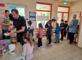 Herr Schuch organisiert den Bauernmarkt in Lafnitz und erklärt sich bereit, in der Schule einem Tag eine gesunde Jause mit regionalen, gesunden Produkten zu organisieren. Unterstützt wird er dabei von einigen Eltern.
